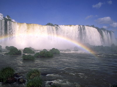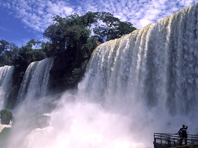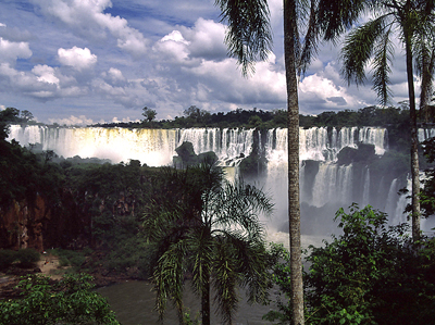 イグアス。グアラニー語で「大なる水」。ナイアガラ、ヴィクトリアと並んで世界三大瀑布(ばくふ=滝)と呼ばれるイグアスの滝は、高さこそ80mと、100mを超えるヴィクトリアの滝に及ばないものの、川幅2.7km、36億リットル/分の水量は、他のふたつの滝をはるかに凌駕する。