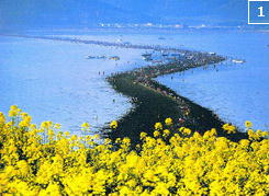 潮がひくと幅30~40メートル、長さ2.8キロにわたる道が現れ、1時間ほどでまた潮が満ちていくという現象です。。…♪