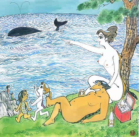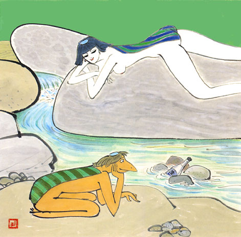 脇腹: 筋が縦に浮き出ている。これが河童の急所で、押えられると動けなくなる。