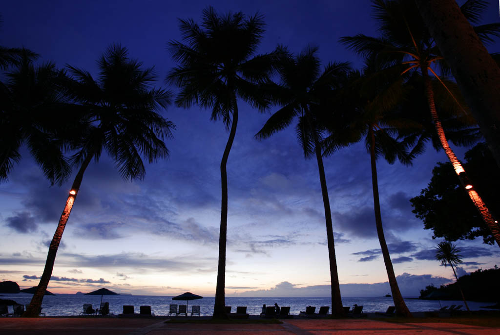 ゆったりとしたタイ式ヴィラの周囲は熱帯庭園が美しく、ココヤシの木々が自然のままに茂り