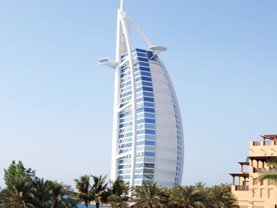 アラブの伝統的な船『ダウ船』の帆をモチーフにデザインされたホテルは海岸から280メートル離れたところに建てられております。…♪