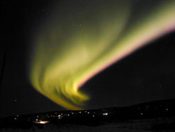 綺麗ですね、オーロラにはどんな形と色があるのでしょうか。色としては、黄緑、緑、青、オレンジ、黄色などが多いらしいのですが、時には、ピンク、虹のように七色全部が一度に現れることもあるとか。