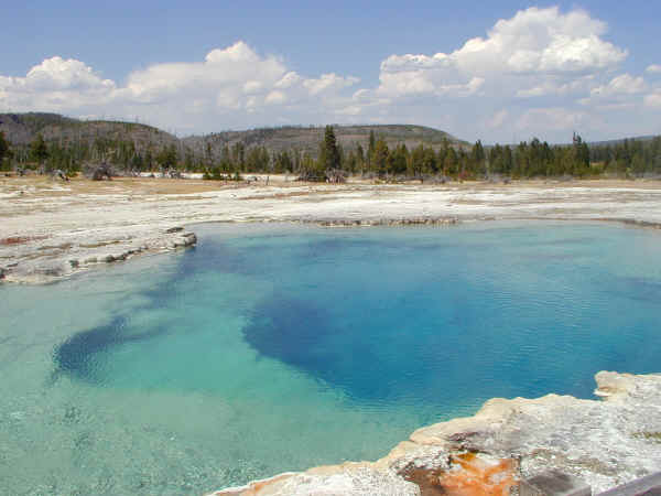 熱すぎて青い ロウアーガイザー地区のモーニンググローリープールが神秘的な色の取り合わせなら、こちらのプールは青の深さで勝負です。