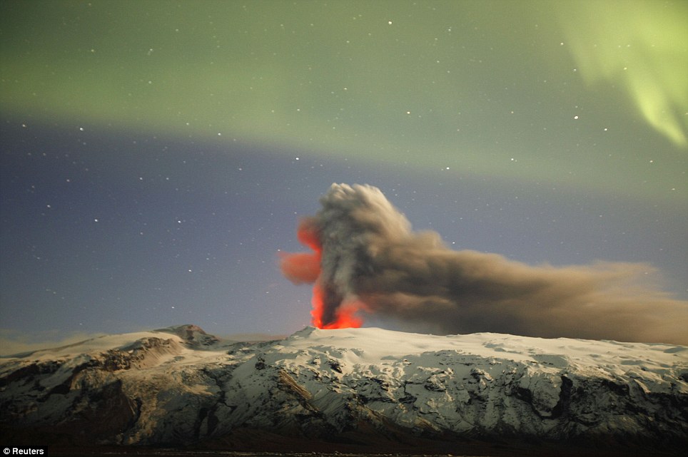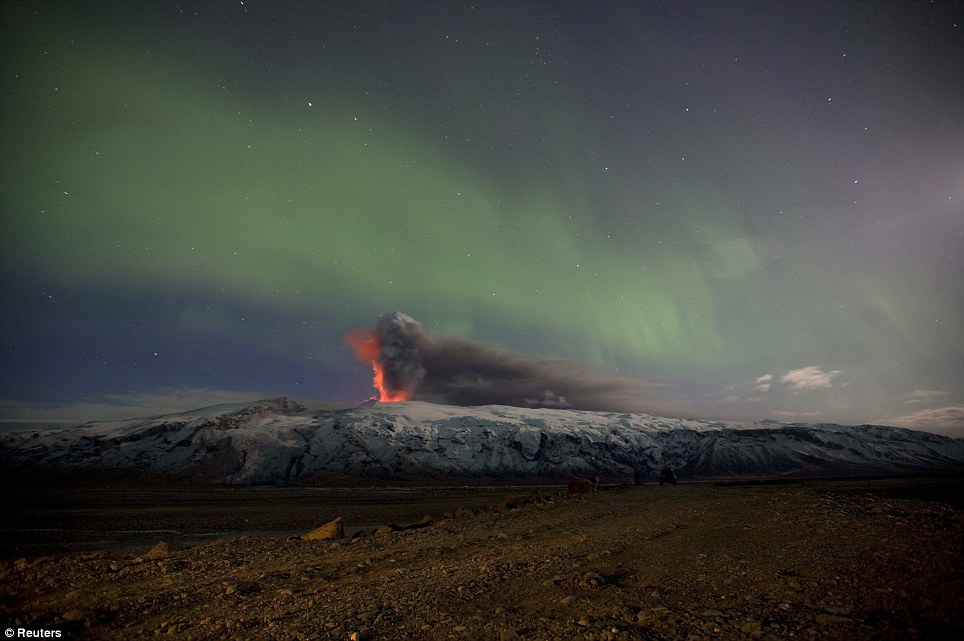 アイスランドの火山噴火にオーロラが現れるという現象が起きました